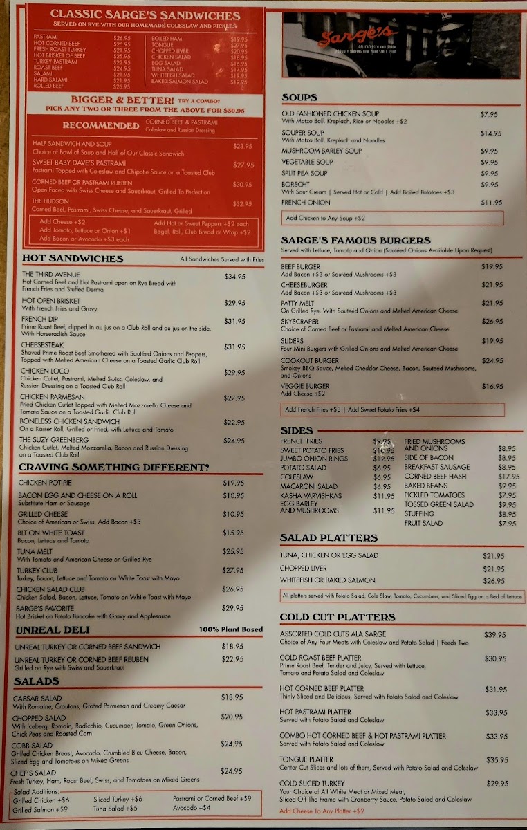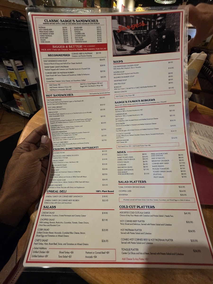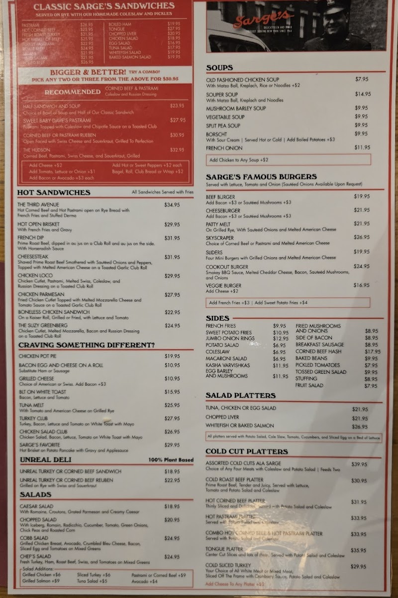 Sarge’s Delicatessen & Diner offers a straightforward, no-nonsense menu that captures the essence of a traditional New York deli. Expect comforting sandwiches and hearty plates that are perfect for a relaxed lunch or a casual dinner after a day in the city.